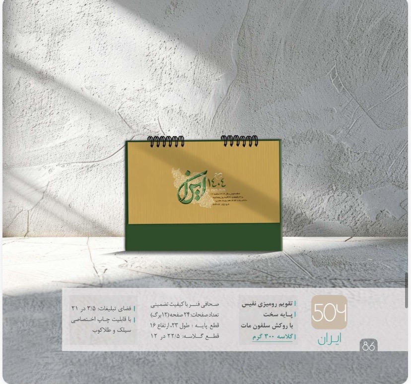 ✅روميزي ساده نفيس ، ✅پايه مقوايي ، ✅قابليت چاپ سيلك و طلاكوب ، ✅برگه ها گلاسه ٢٥٠ گرم ، ❎قابليت اختصاصي سازي دارد❎